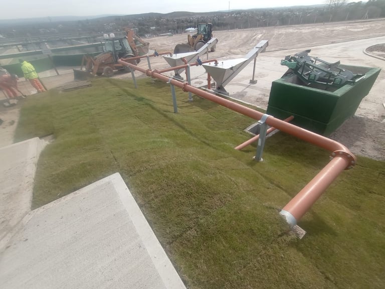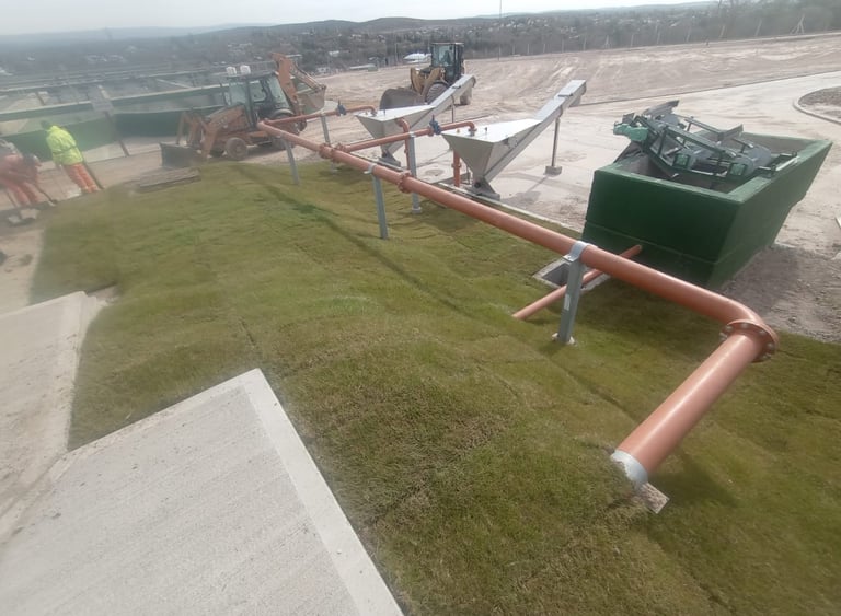 Parquización, proyecto y ejecución “PLANTA DEPURADORA DE LÍQUIDOS CLOACALES”. (BENITO ROGGIO E HIJOS S.A. – ELECTRO INGENIERÍA S.A.). Villa Carlos Paz. Córdoba. 2007 / 2008. Encespado en 22.500 m2